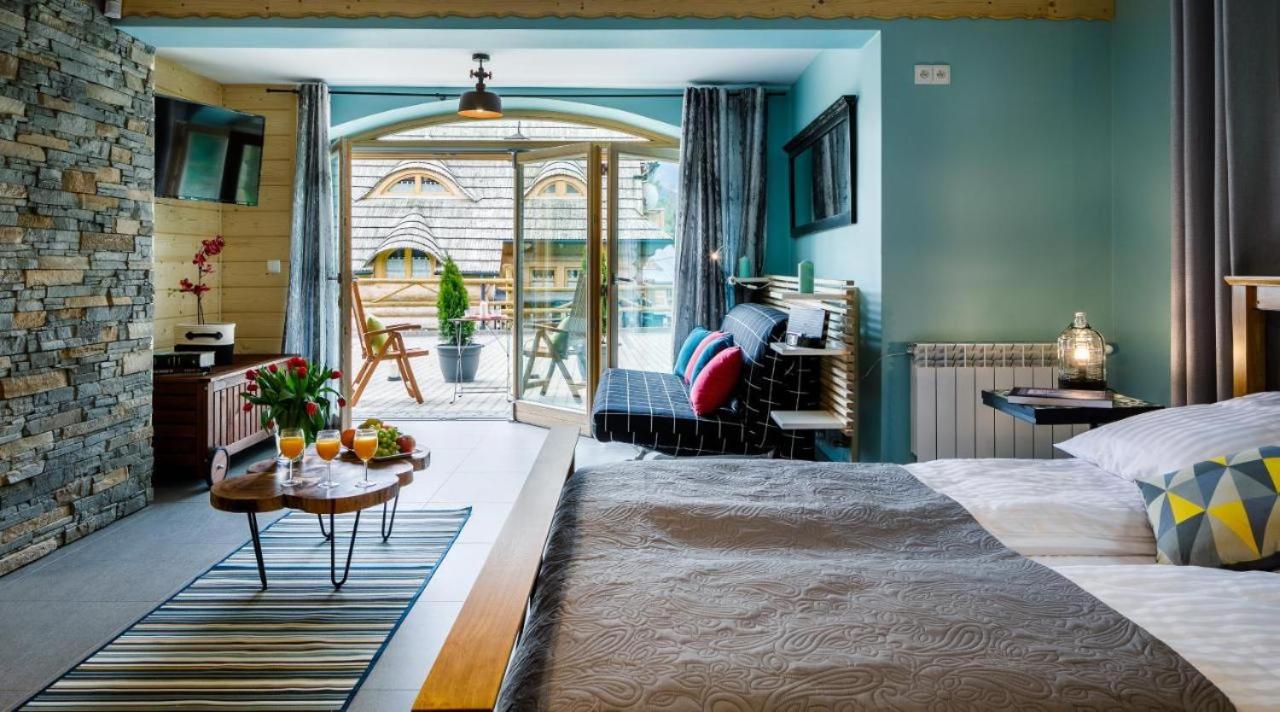 Domek typu Superior. Guests will have a special experience as this chalet offers a sauna and a fireplace. Featuring a private entrance, this spacious chalet also comprises 1 living room, 5 separate bedrooms and 4 bathrooms with a shower. Guests will find a stovetop, a refrigerator, a dishwasher and kitchenware in the kitchenette. The chalet also provides guests with a barbecue. Boasting a terrace with mountain views, this chalet also provides a washing machine and a flat-screen TV with satellite channels. The unit offers 8 beds. Domek - 15 osobowy. Powierzchnia pokoju ok.: 180 mkw.