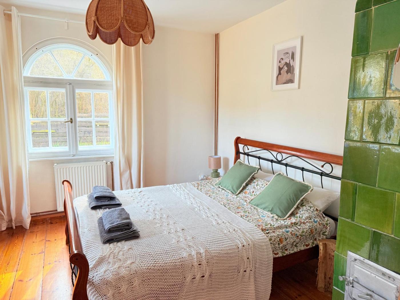 Dom z 3 sypialniami. This holiday home features a fireplace. Boasting a private entrance, this spacious holiday home also features 1 living room, 3 separate bedrooms and 1 bathroom with a walk-in shower. Guests will find a stovetop, a refrigerator, a dishwasher and kitchenware in the well-fitted kitchen. The holiday home also comes with a barbecue. The holiday home features a tea and coffee maker, a seating area, a dining area, a flat-screen TV with streaming services, as well as garden views. The unit has 4 beds. Dom wakacyjny - 5 osobowy. Powierzchnia pokoju ok.: 120 mkw.