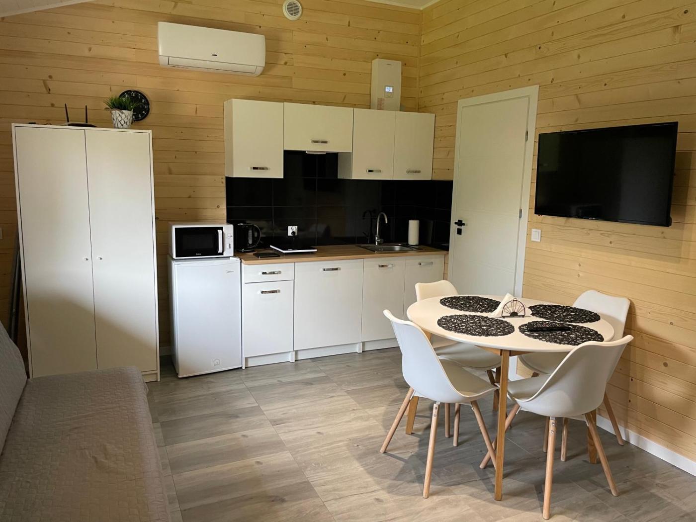 Domek. Featuring a private entrance, this air-conditioned chalet comprises 1 living room, 1 separate bedroom and 1 bathroom with a shower and a hairdryer. Guests will find a stovetop, a refrigerator, kitchenware and a microwave in the well-fitted kitchenette. The chalet also provides guests with a barbecue. Boasting a terrace with garden views, this chalet also provides soundproof walls and a flat-screen TV with streaming services. The unit offers 3 beds. Domek - 5 osobowy. Powierzchnia pokoju ok.: 35 mkw.